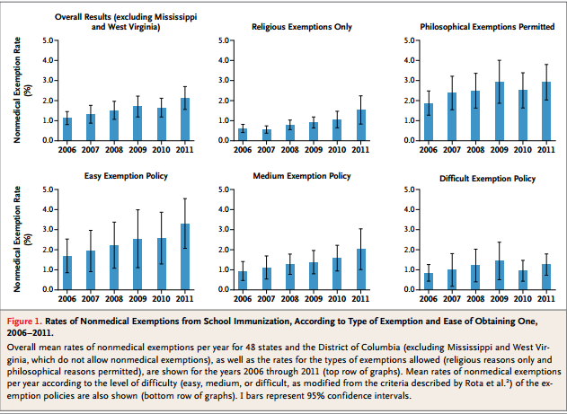 Omer and colleagues published an article in the New England Journal of Medicine in 2012 which showed rates of non-medical immunization exemptions made in 2006-2011. The number of children not getting vaccinated for non-medical reasons in on the rise.