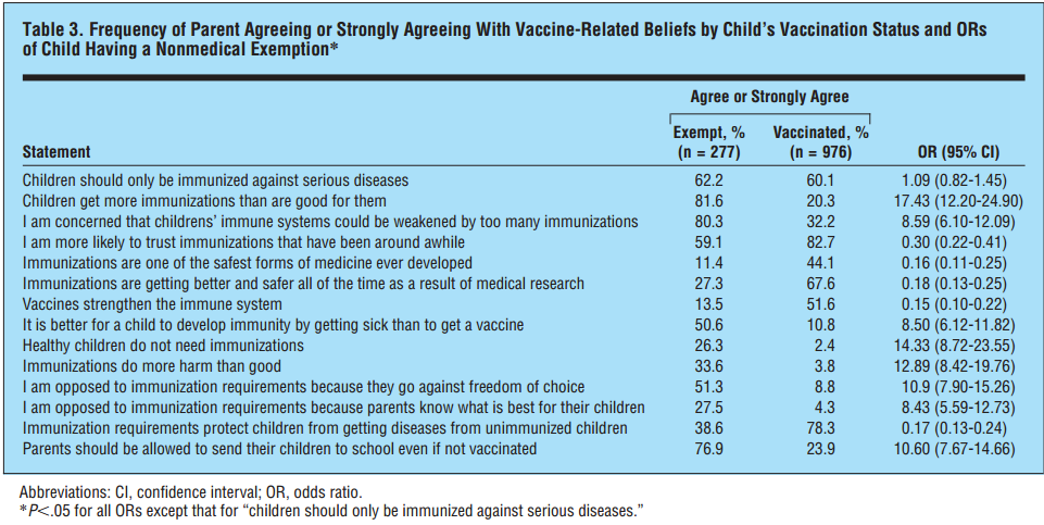 Glanz et al looked into parental refusal of pertussis vaccination in particular , and found that vaccine refusers had a 23-fold increased risk of developing the disease. Salmon et al similarly investigated vaccine refusal. I’ll let the charts below do the talking.