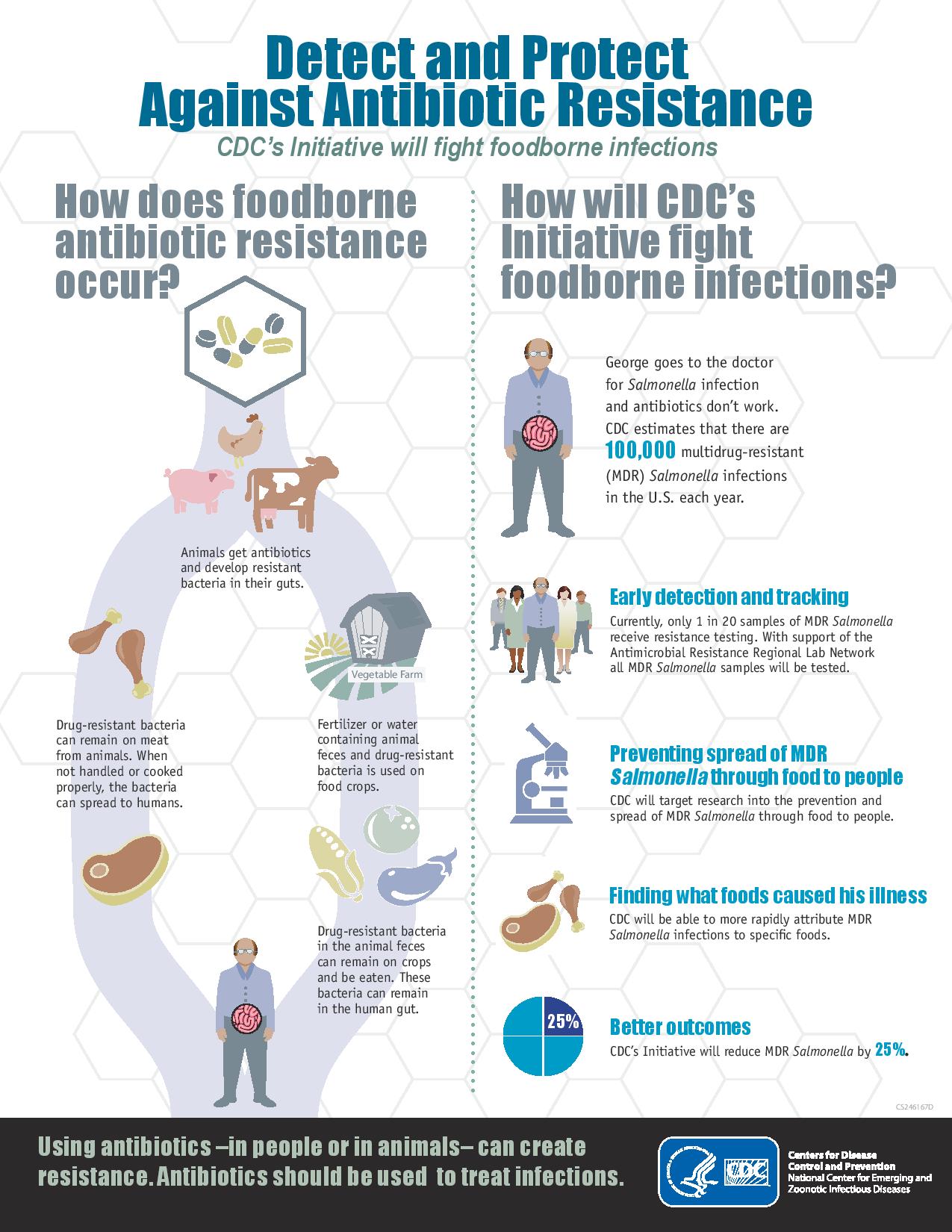 The CDC’s Antibiotic Resistance Initiative is working closely with the National Institutes of Health to achieve the following five goals over the next five years with $30 million in annual funding. With this funding they aim to improve education on resistance and susceptibilities for physicians and other healthcare providers, improve communication between hospitals and the community to better detect and contain antibiotic-resistant outbreaks, create a resistant-bacteria bank in the national laboratories to further study and create treatments for these diseases, and more.