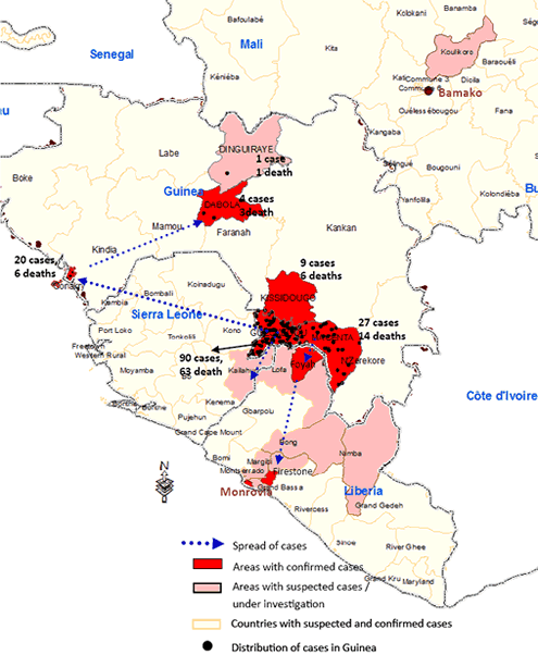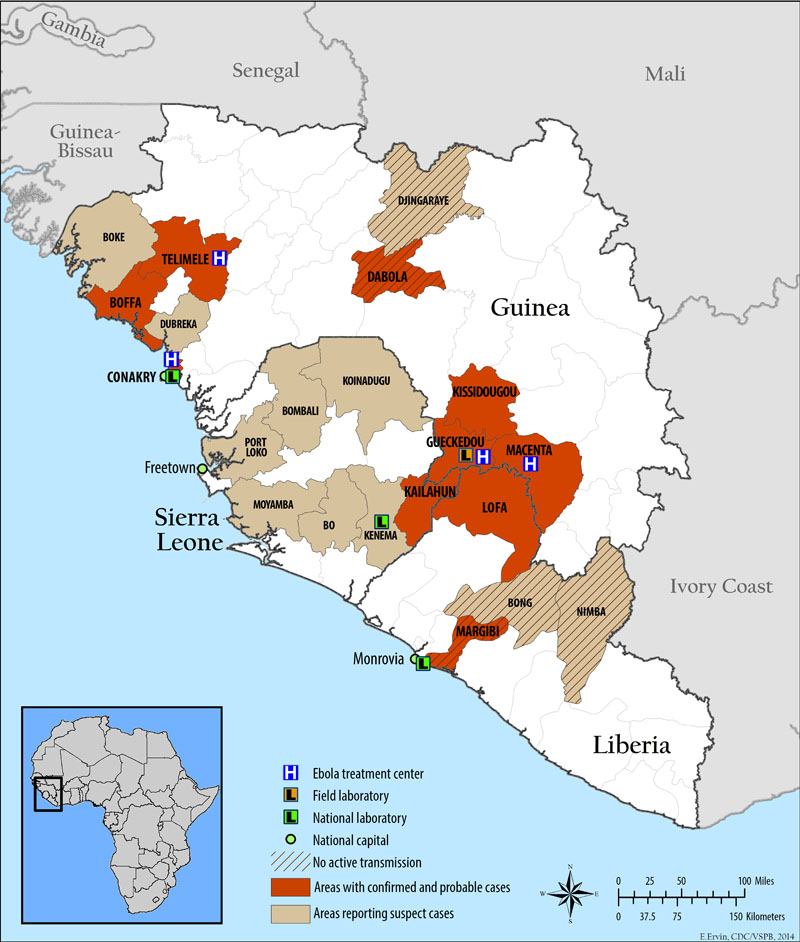 A deadly pandemic has been brewing in western Africa since December 2013. This latest outbreak of the deadly Ebola Virus Disease (EVD) began in the Republic of Guinea and then spread to Sierra Leone and Liberia. To date, 344 suspected and confirmed cases of EVD have been reported in Guinea, 112 in Sierra Leone, and 13 in Libera. Since emerging in 1976 in Sudan and Congo, EVD outbreaks have occurred 33 times.